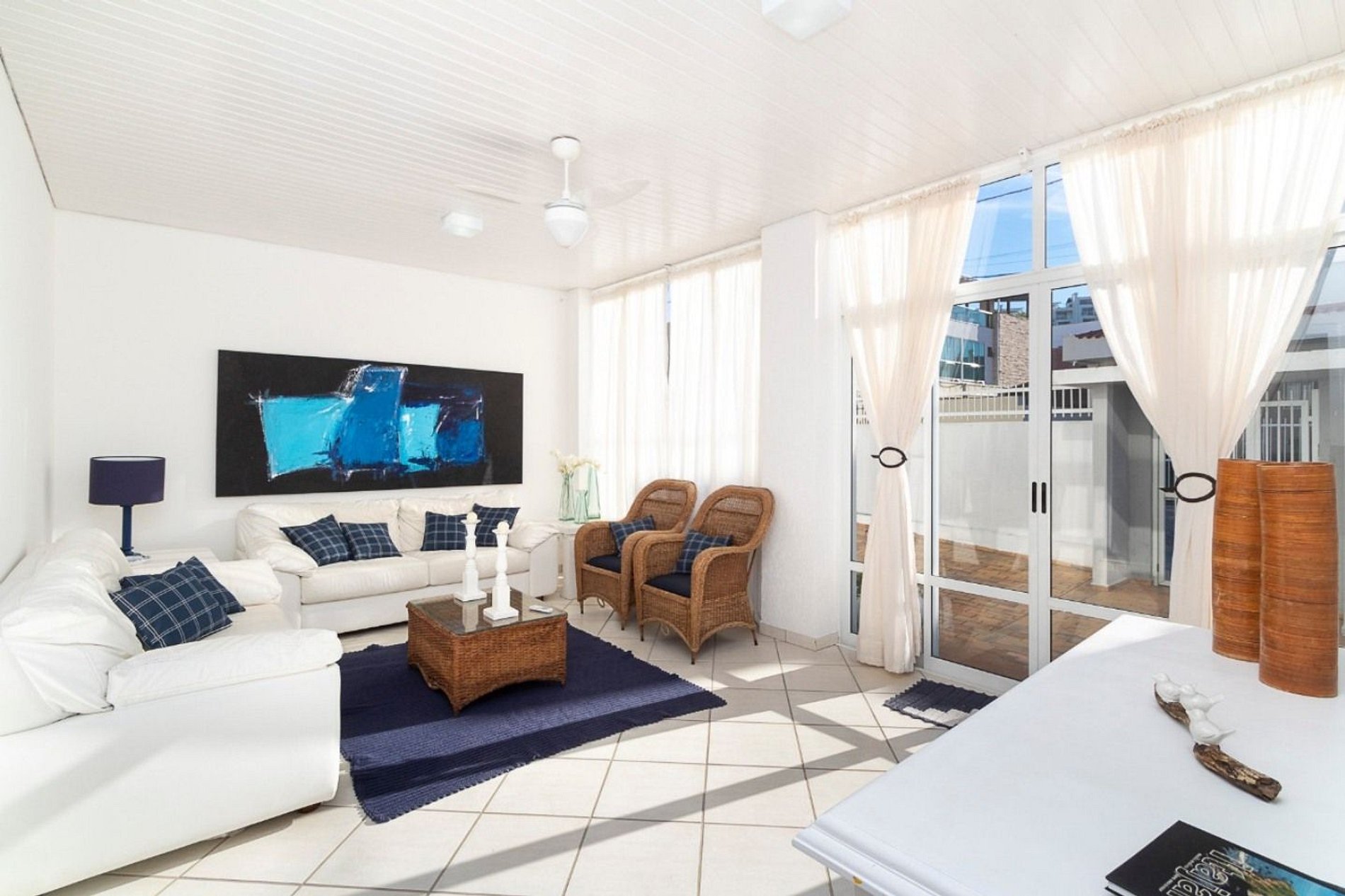 *Ampla sala com sofá cama e ventilador