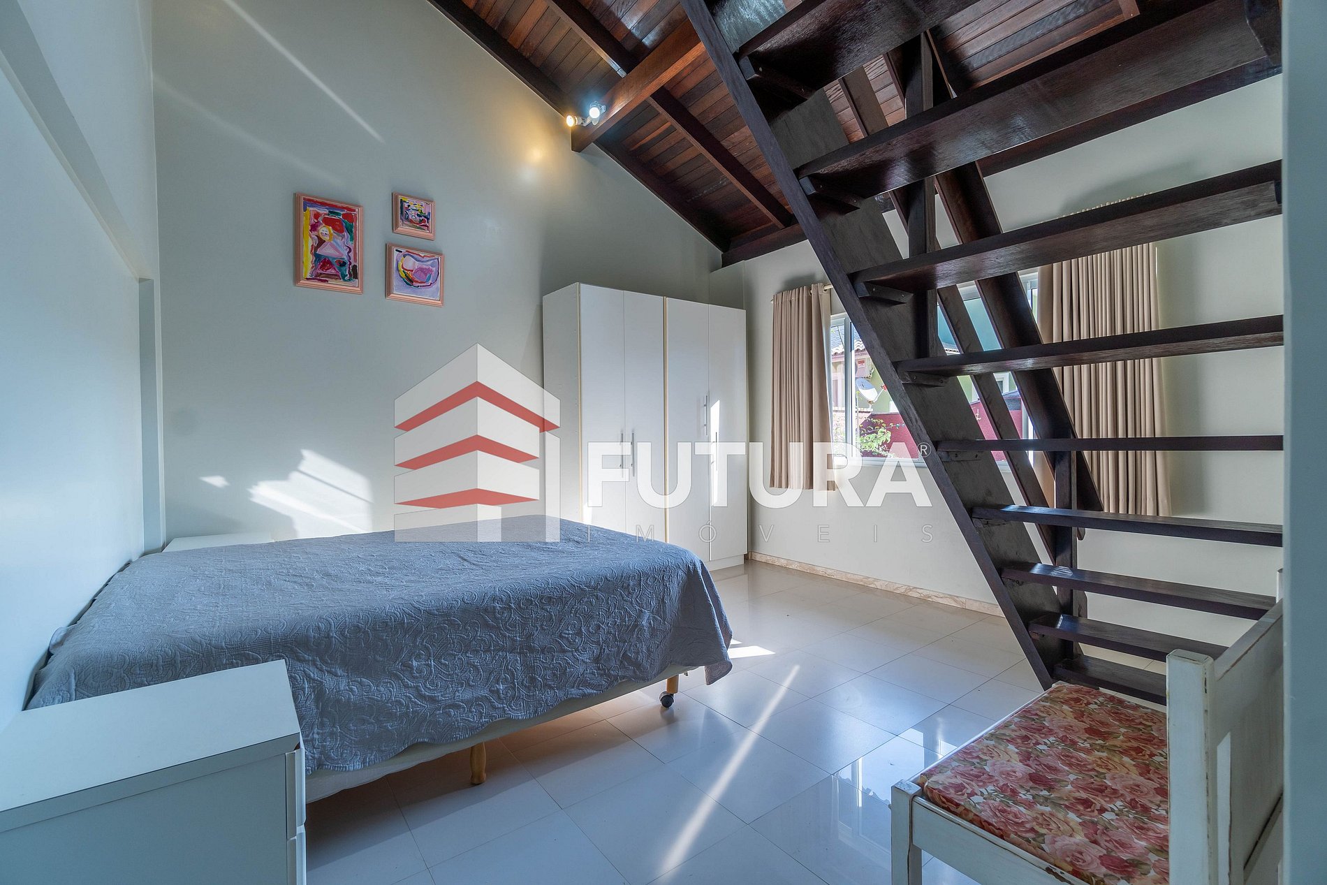 *01 suíte com cama de casal + ar condicionado + acesso a mezanino com uma cama de solteiro;