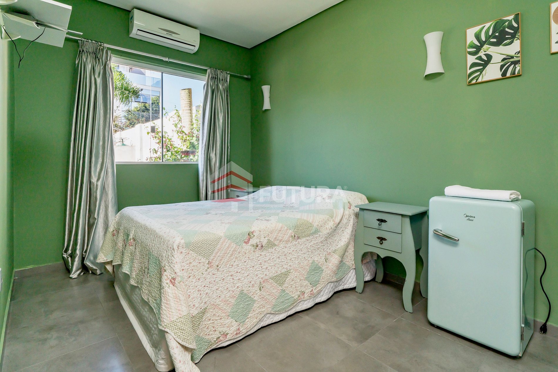*01 suíte com cama de casal + ar- condicionado + frigobar;