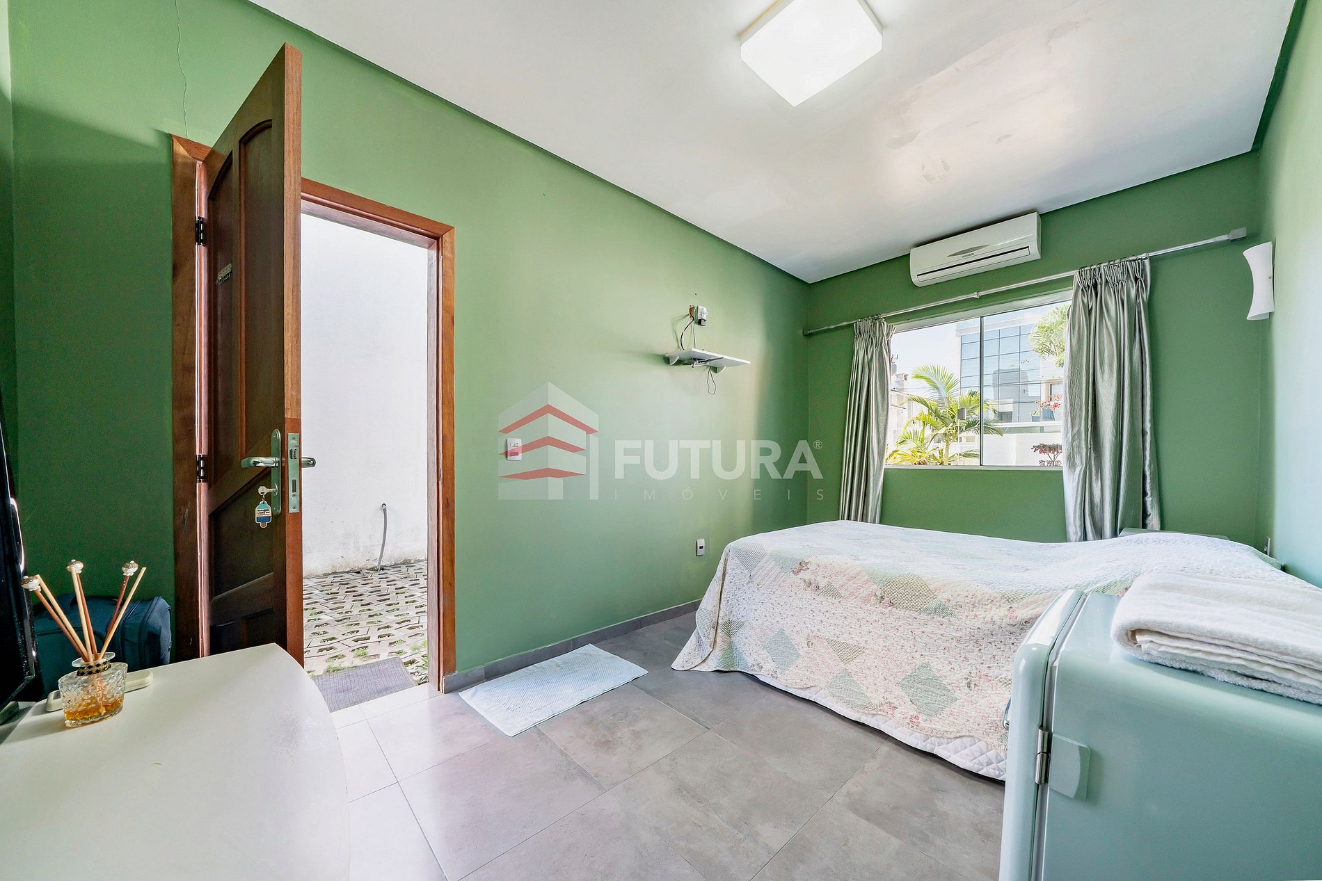 *01 Suíte com cama de casal + ar condicionado + sacada com vista área externa;