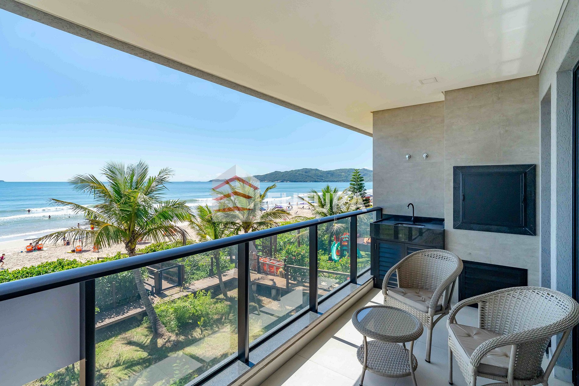 *Sacada com churrasqueira e vista mar.