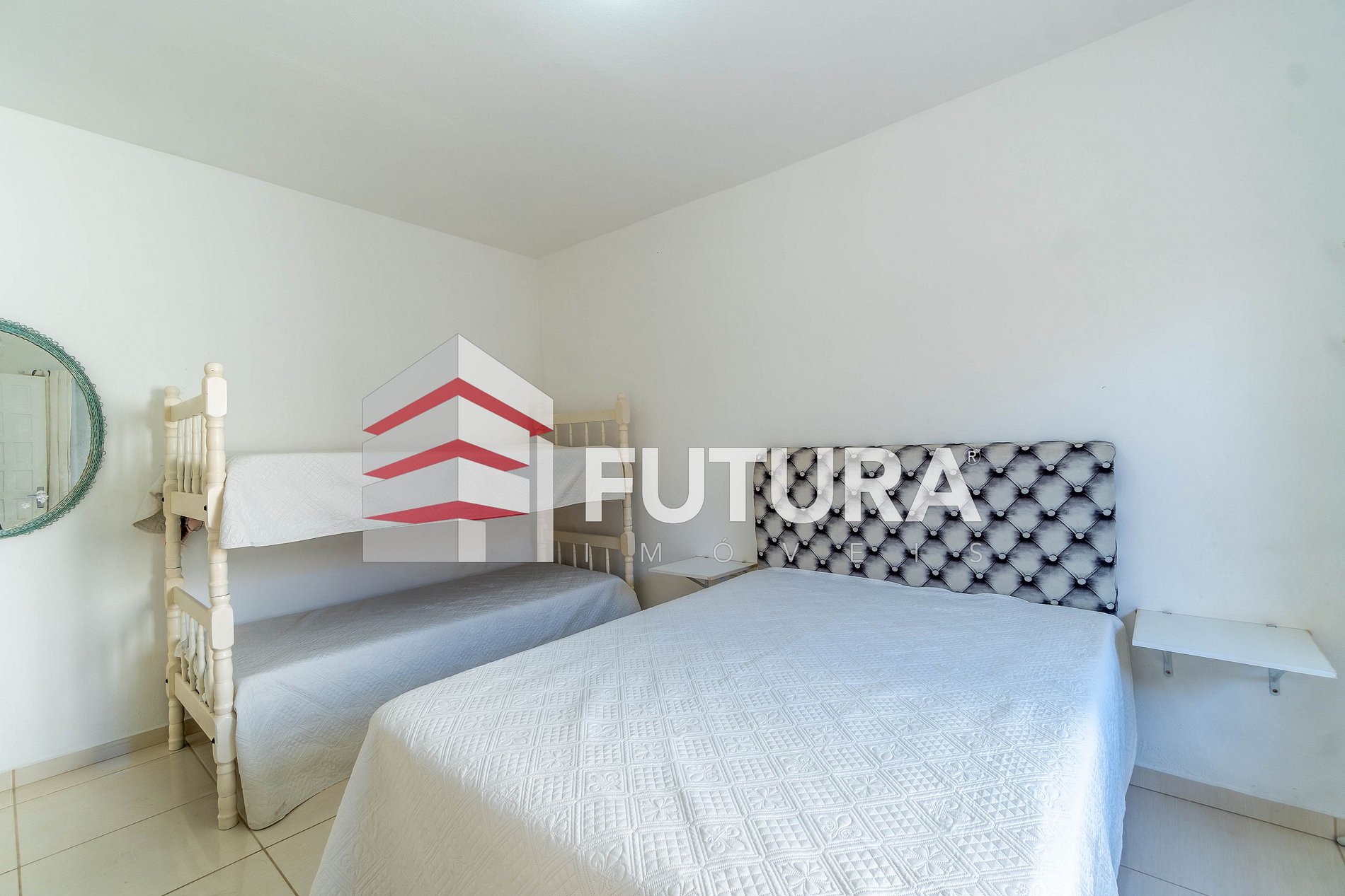 *01 suíte com cama de casal + uma beliche + ar condicionado (edícula nos fundos);