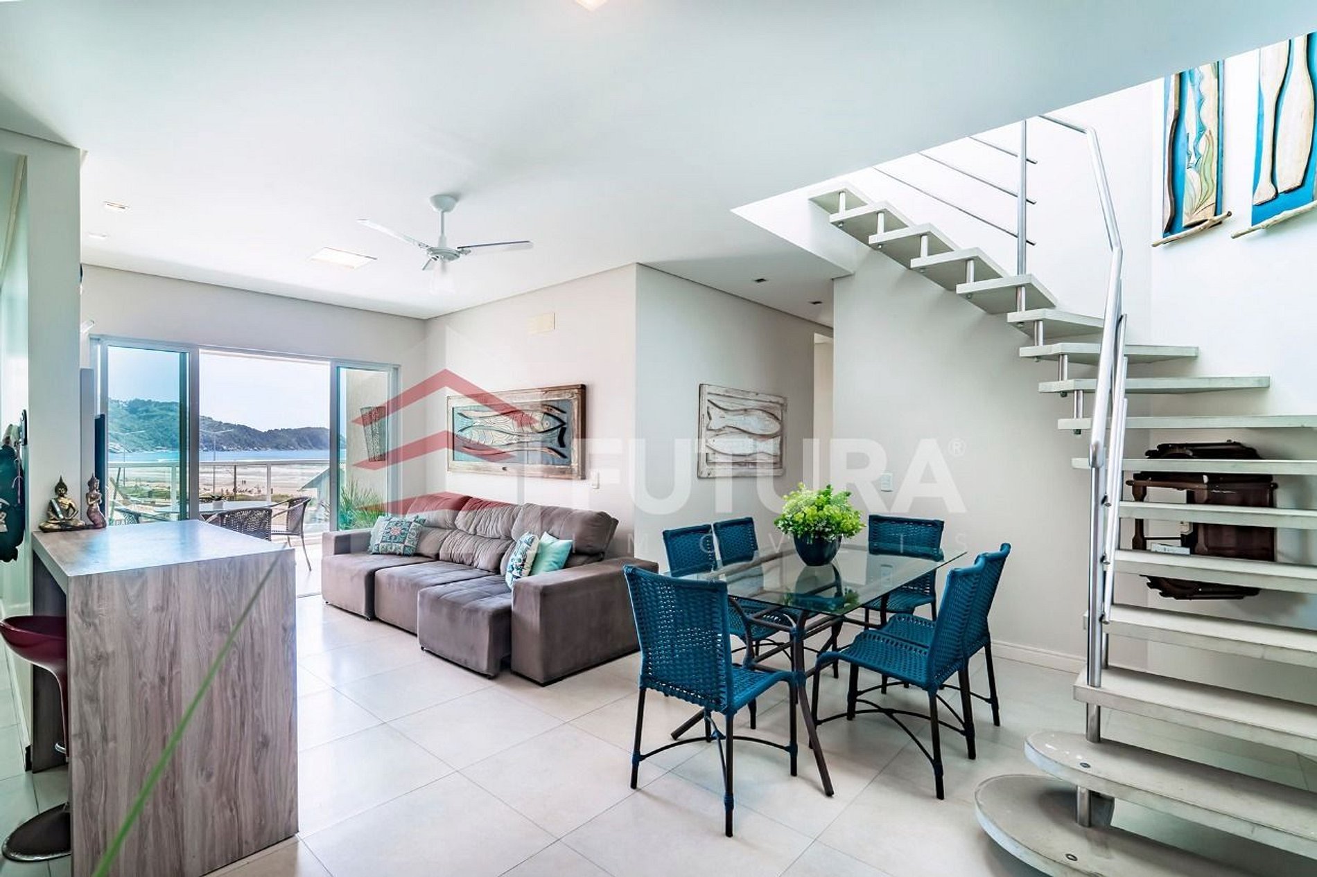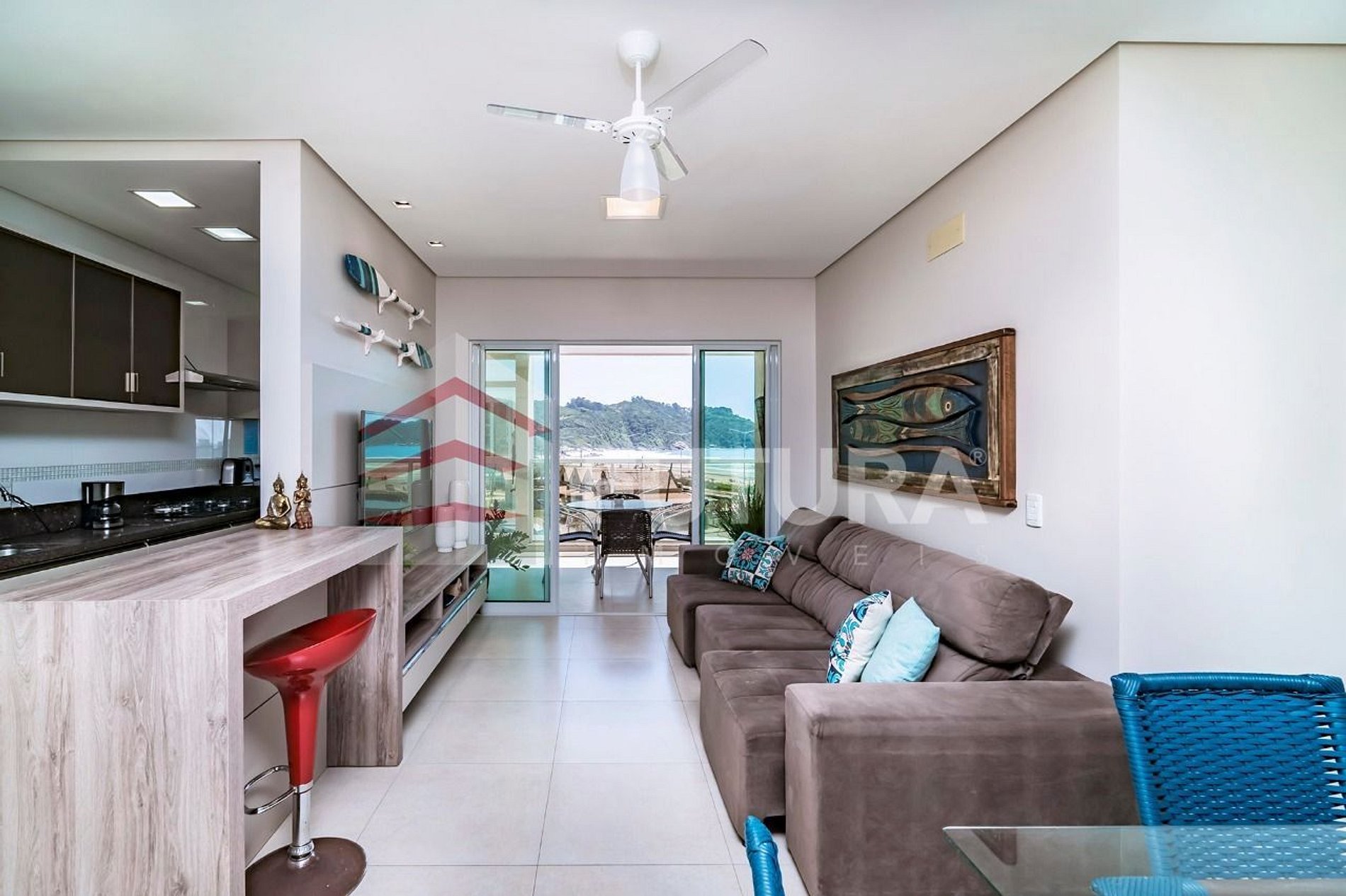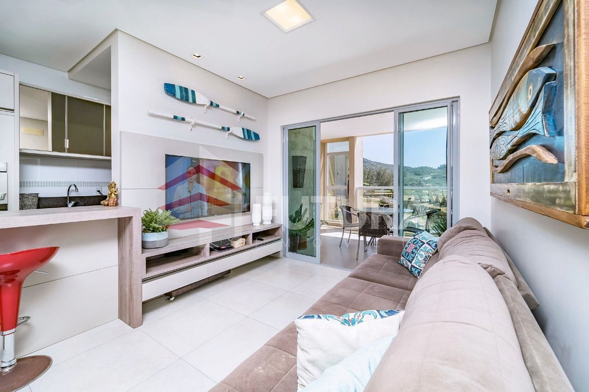 *Sala de estar com TV + acesso a sacada com vista mar;