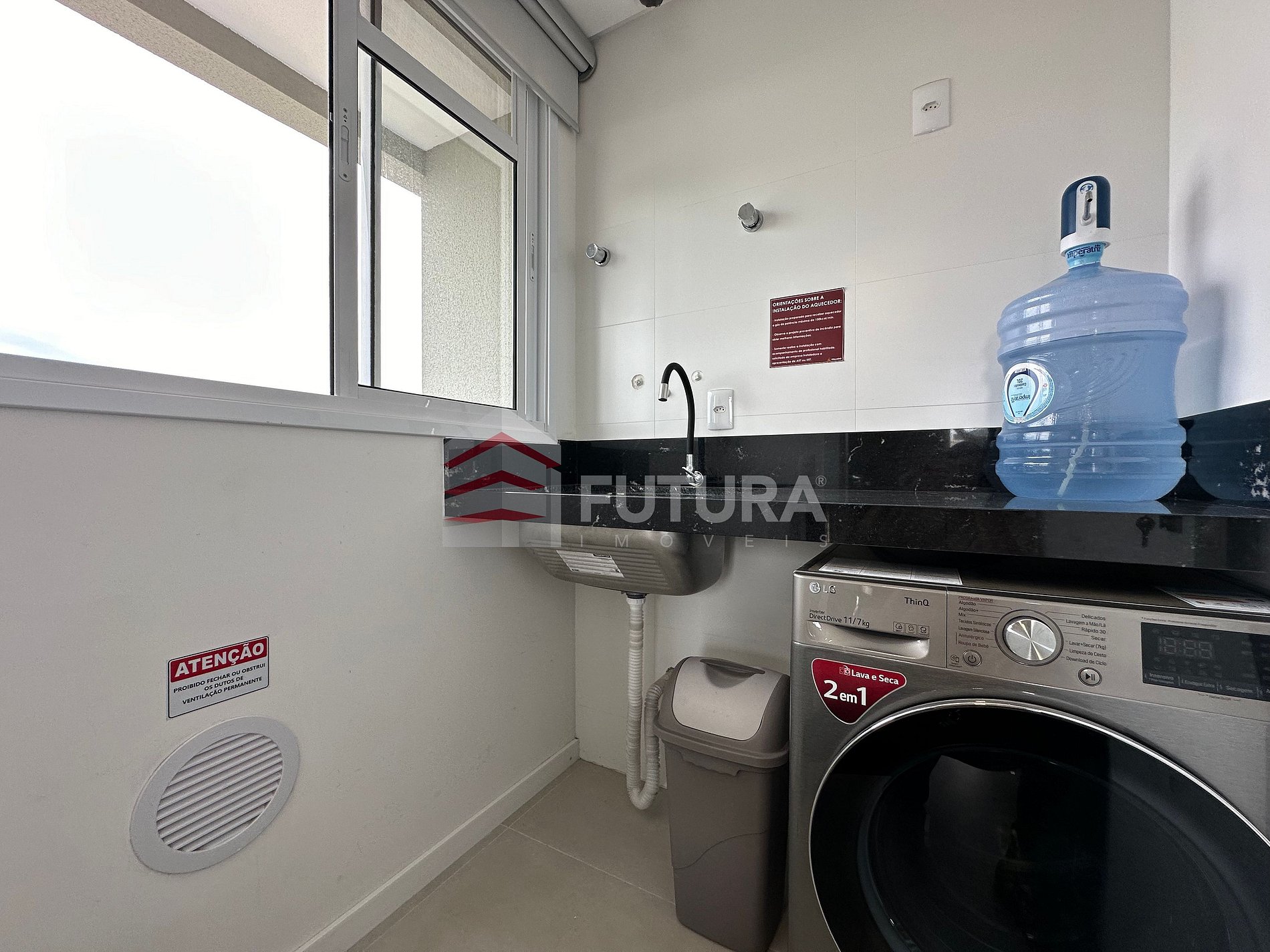 *Área de serviço com máquina de lavar roupa;