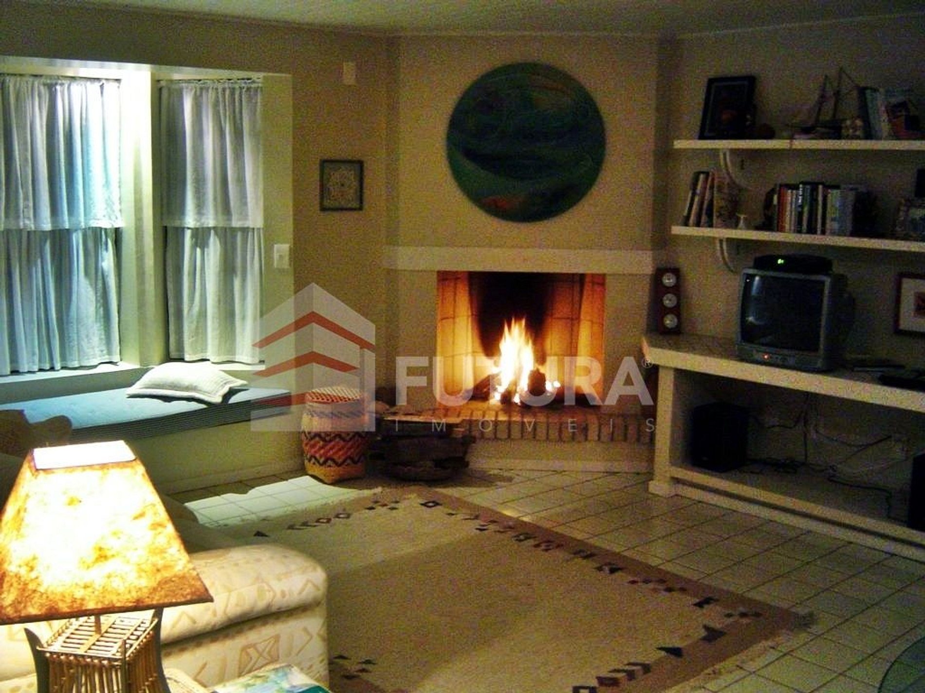 *sala de estar com tv + lareira;