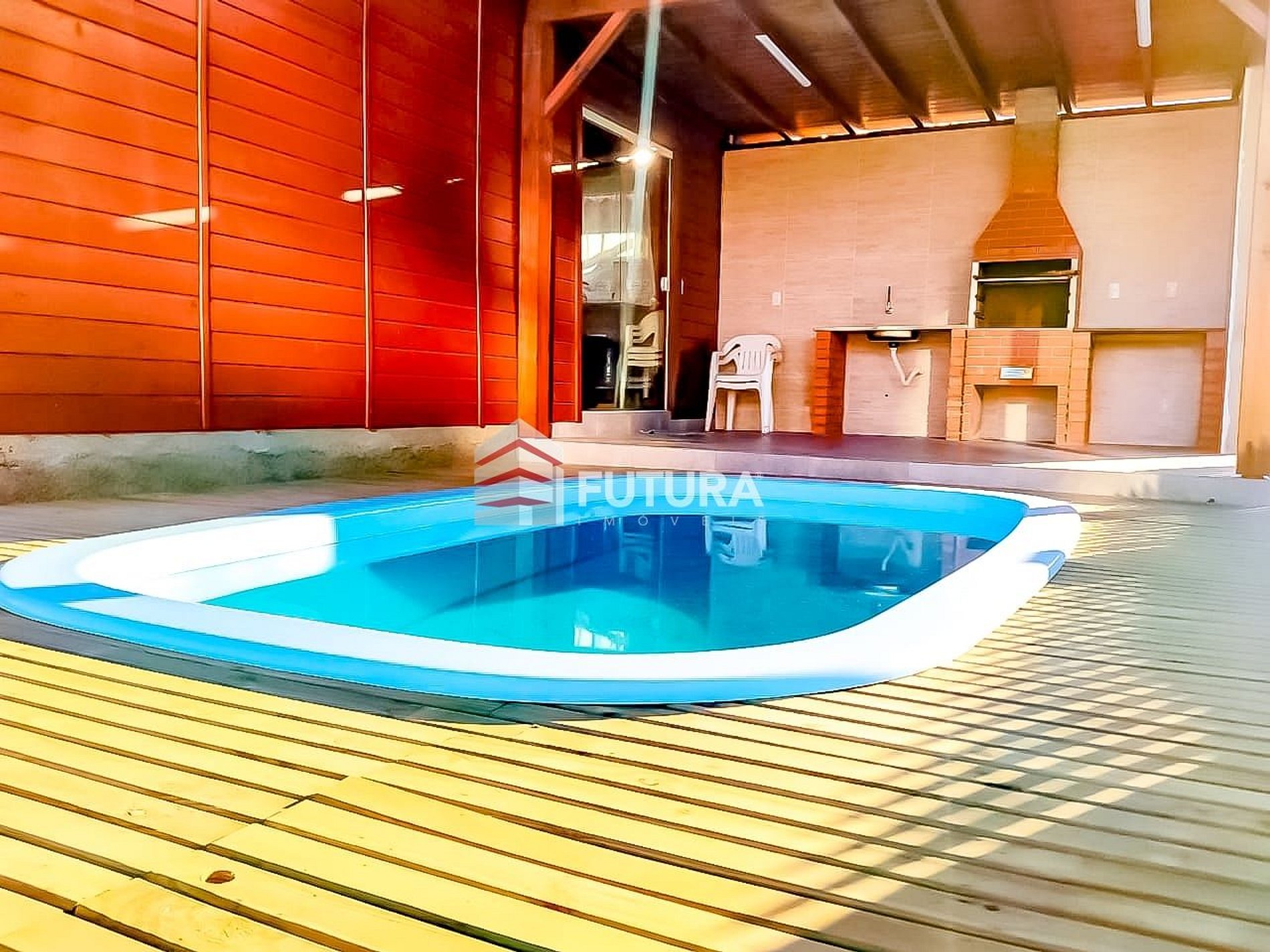 Casa com piscina e 03 quartos sendo: