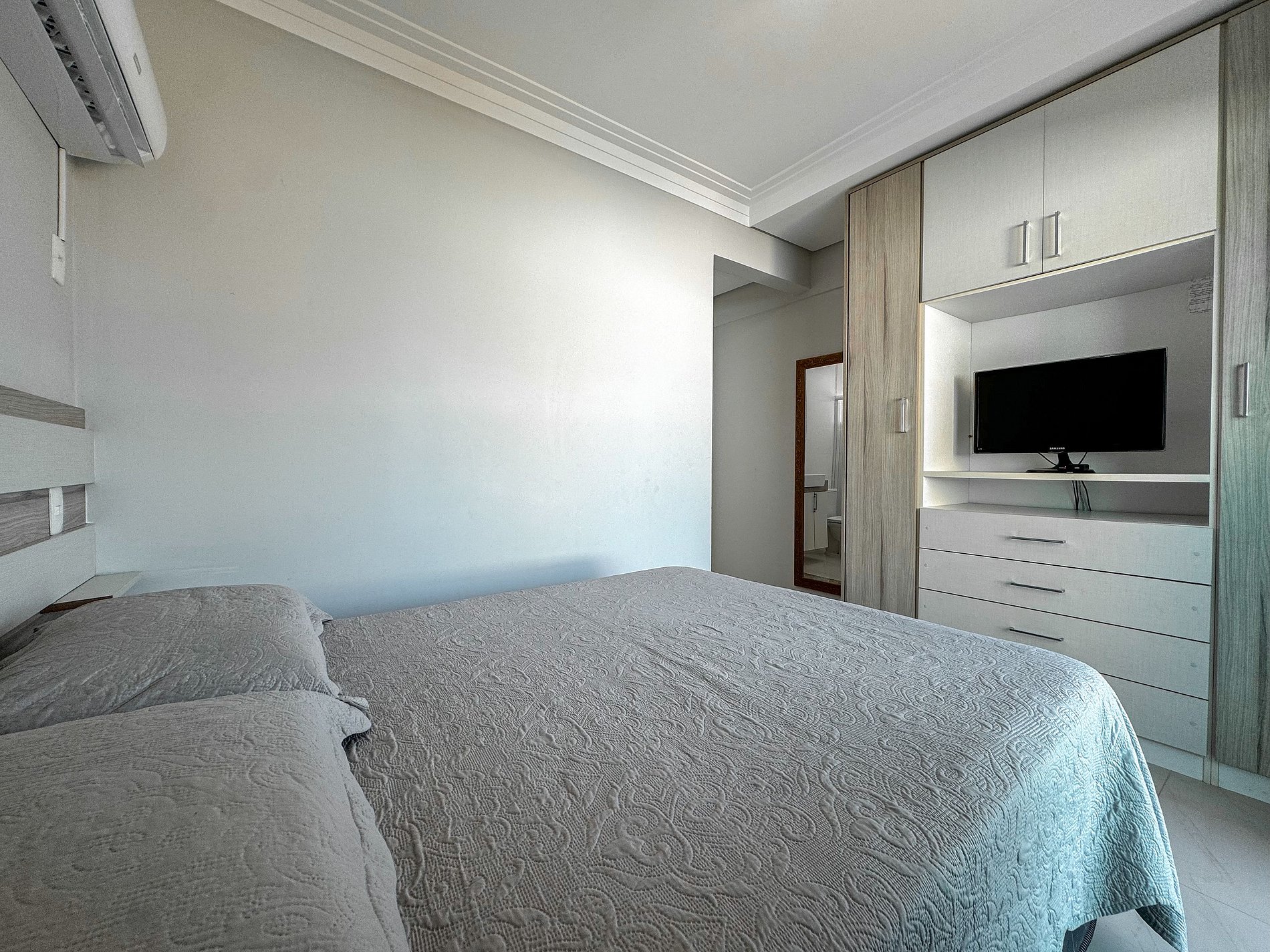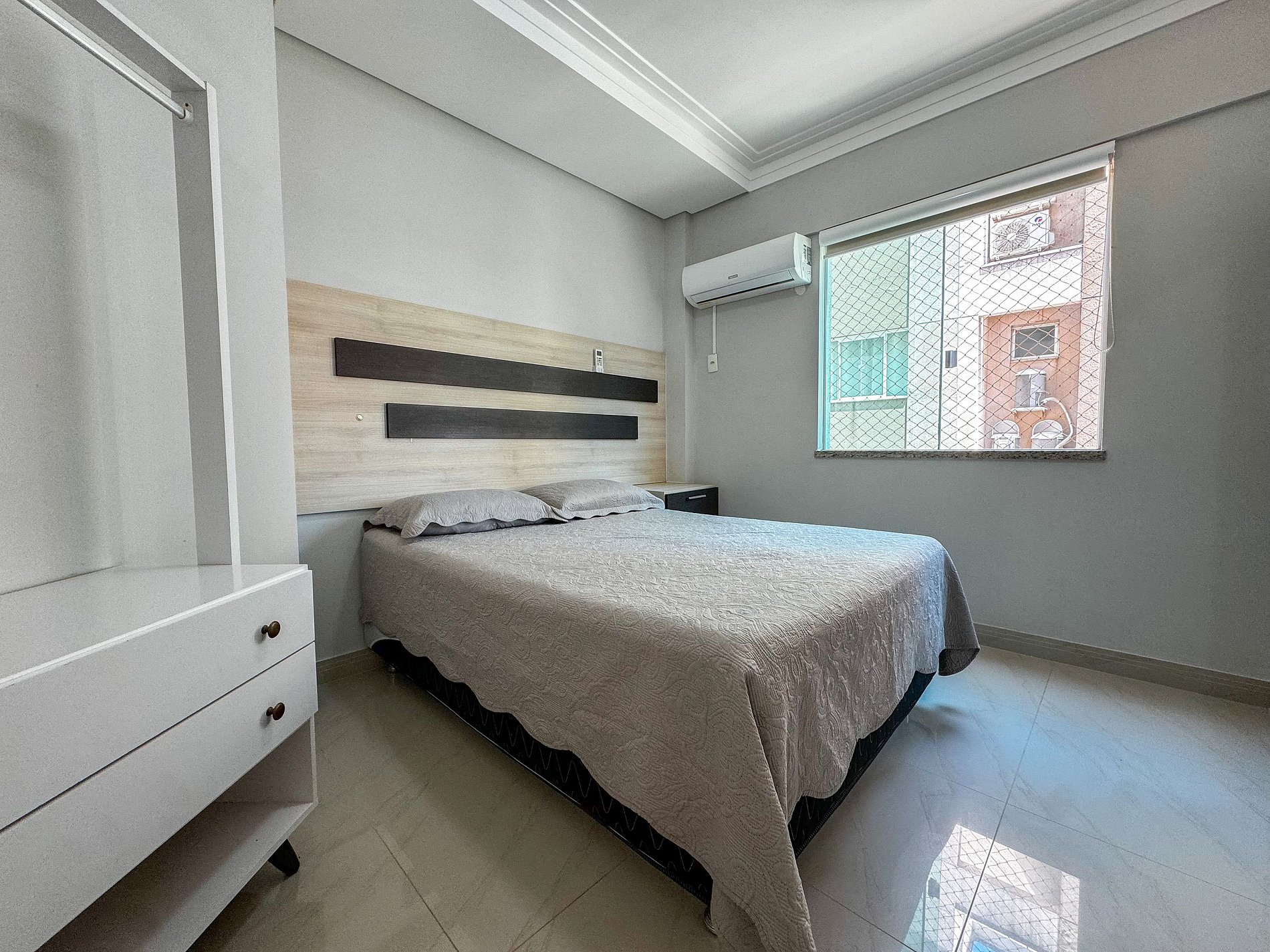 *01 dormitório com cama box de casal com ar condicionado
