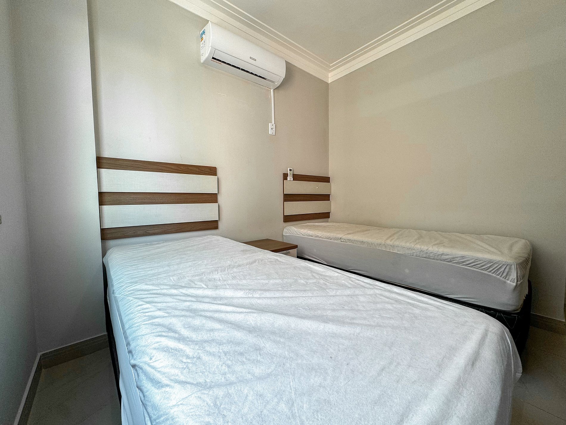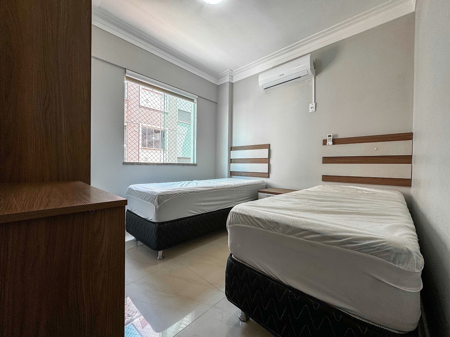 *01 dormitório com duas camas de solteiro e ar condicionado