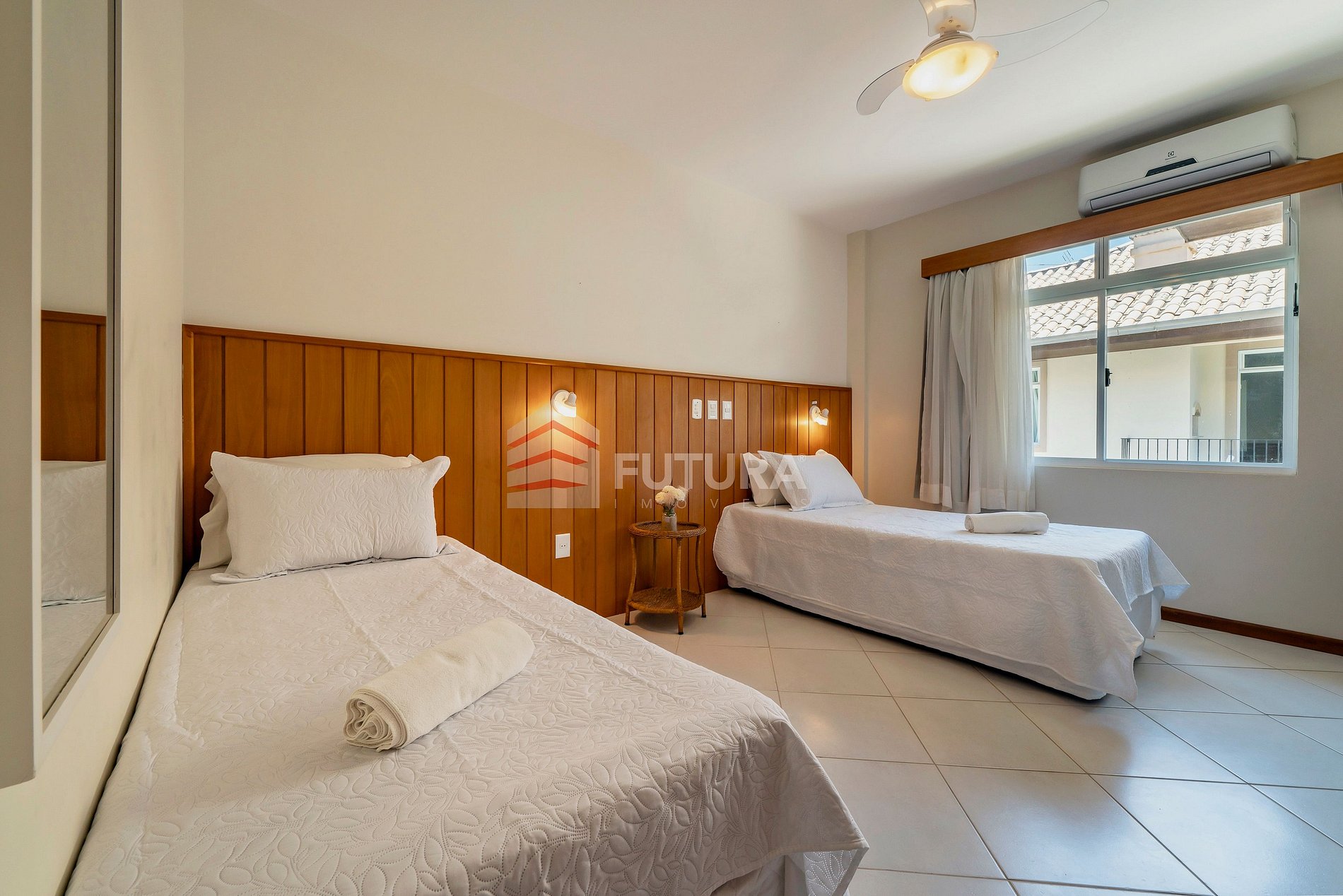 *01 dormitório com 02 camas de solteiro + ar condicionado;