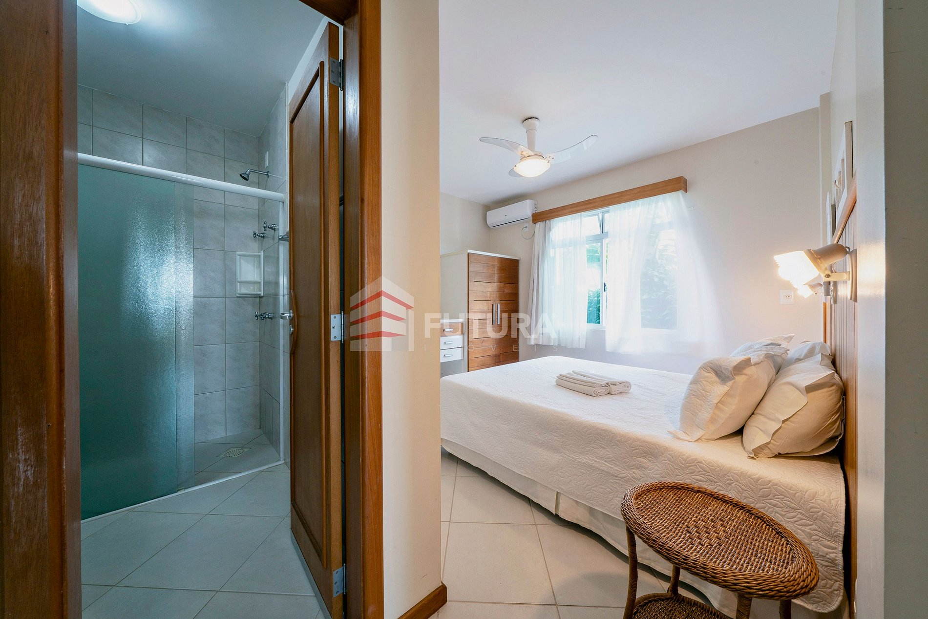*01 suíte com cama de casal + ar condicionado;