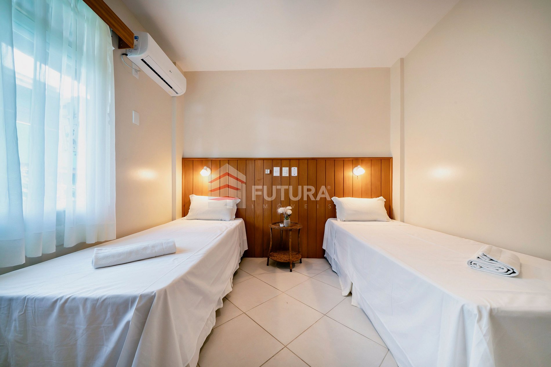 *01 dormitório com 02 camas de solteiro + ar condicionado;