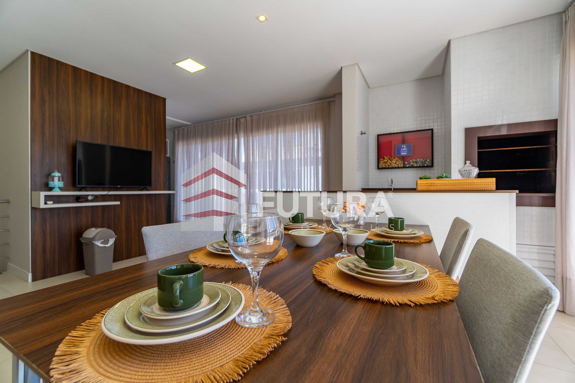 *Espaço conjugado com mesa de jantar + churrasqueira e pia;