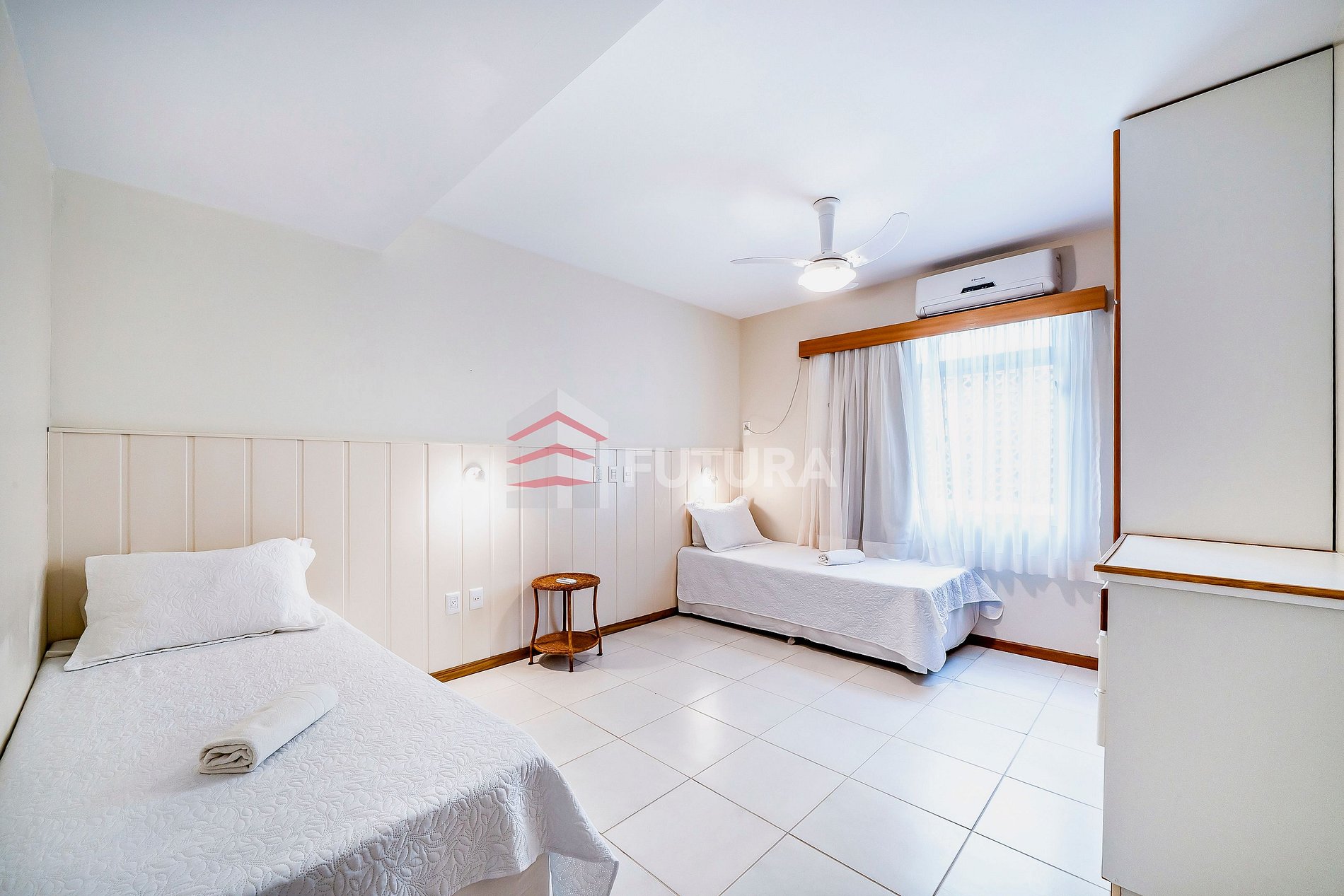 *01 dormitório com 02 camas de solteiro + ar condicionado;